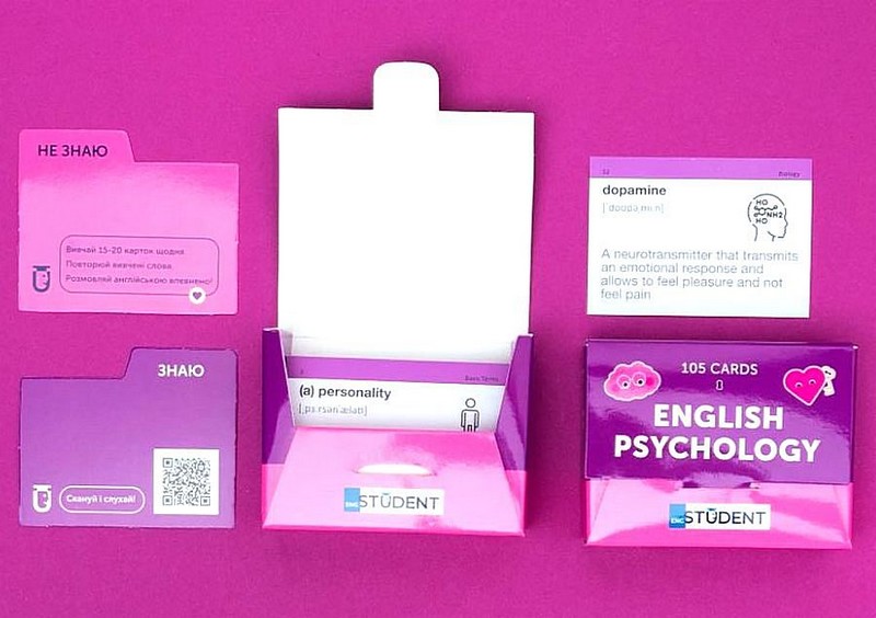 Набір «English Psychology» (рівень В1-C1) — картки для вивчення тонкощів психології. У цьому наборі ви знайдете найважливіші терміни, які допоможуть вам побудувати міцний фундамент знань.