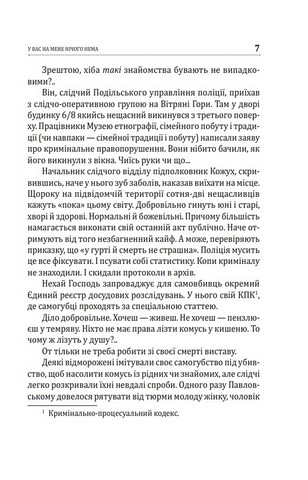 В квартирі жила столітня жінка Поліна Сухацька. Ілля за нею доглядав. На місці злочину разом із криміналістом Шляхтуром капітан виявив загадкову медсестру, яка приводила до тями стару, що втратила правнука. Згодом патологоанатом Постолатій встановив, що Голомідов був невиліковно хворий на рак легень, у крові виявлено велику дозу наркотику-знеболювального. Самогубець свідомо вискочив із вікна, щоб обірвати страждання.