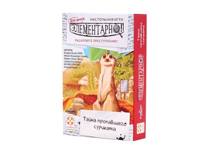 Приобретите настольную игру Элементарно! Для детей: Тайна пропавшего суриката для ваших малышей, пусть они почувствуют себя в роли известного сыщика Шерлока Холмса, без участия которого не раскрывалось ни одно преступление. К тому же это отличный вариант подарка каждому ребёнку, на любой праздник или просто так для полезного досуга.