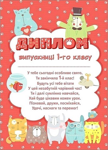 Диплом випускниці 1 класу «Котики» – це чарівна пам’ятка про перший навчальний рік!