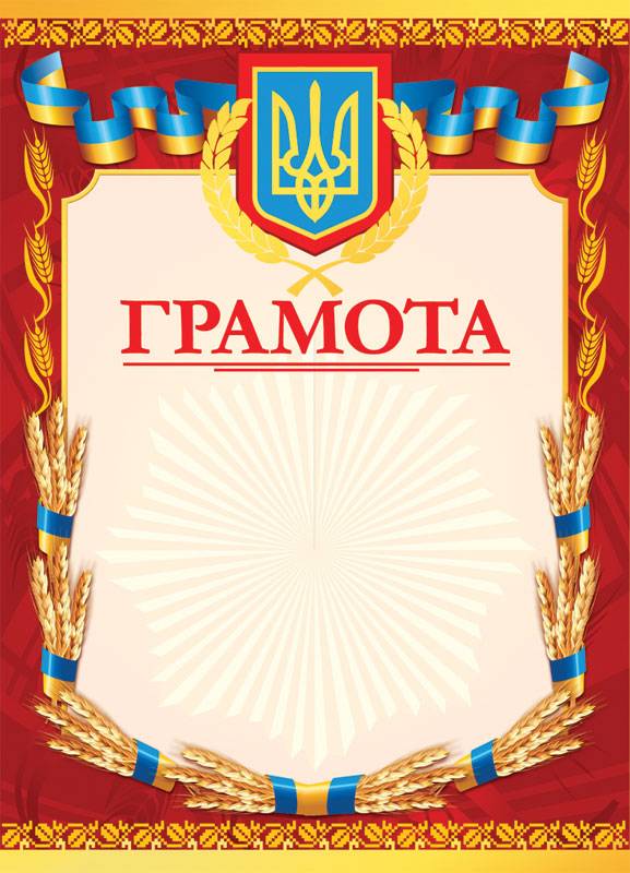 Грамота червона з колосками Ранок. Формат А4 Грамота з тисненням «Золотому». Папір з ламінуванням, високоякісний друк.