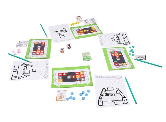 Каждому игроку нужно нарисовать самый лучший замок с использованием доступных ресурсов после броска кубика и заработать за него победные очки, чтобы победить в игре.