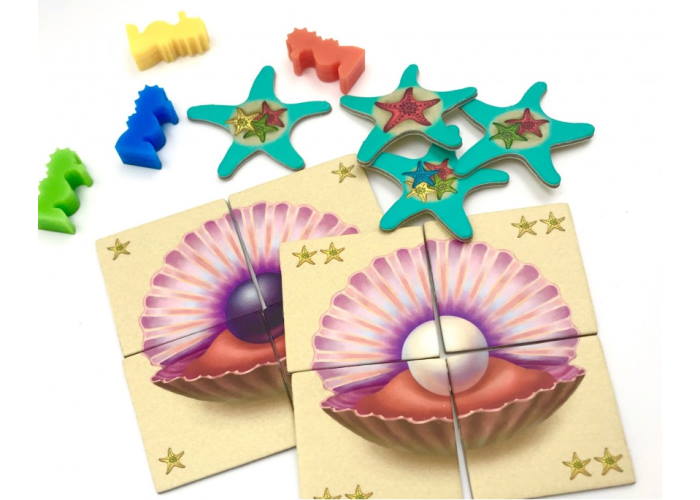Игроки по очереди выбирают себе цвет фигурки морского конька, берут начальный тайл такого же цвета и жетончик вспомогательных баллов с изображением одной звезды. Следующие участники таким же образом берут свои стартовые наборы с соответствующими дополнительными баллами на жетонах (второй игрок – жетон с двумя звездами, третий – тремя и т.д.).