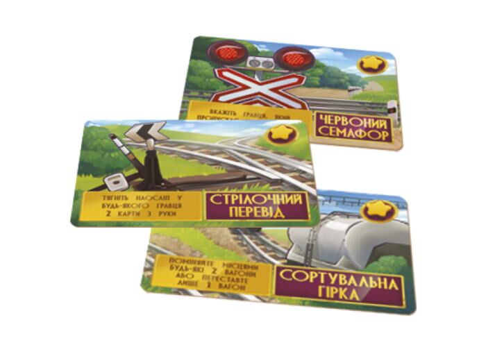 Если у вас всё сложно с составом, можете использовать карты действий и, например, активировать «Стрелочный перевод», чтобы вытянуть у любого игрока 2 карты, или провести «Техническую ревизию», забрав у кого-нибудь 3 карты с руки и заменив их двумя вагонами с путей.