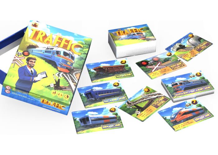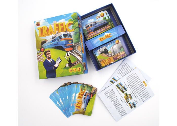 Настольная игра Трафик – карточное семейное развлечение для 2-6 игроков, в котором нужно формировать и отправлять поезда с помощью локомотивов, строить новые железнодорожные пути, устраивать преграды соперникам и обходить подготовленные для вас ловушки.