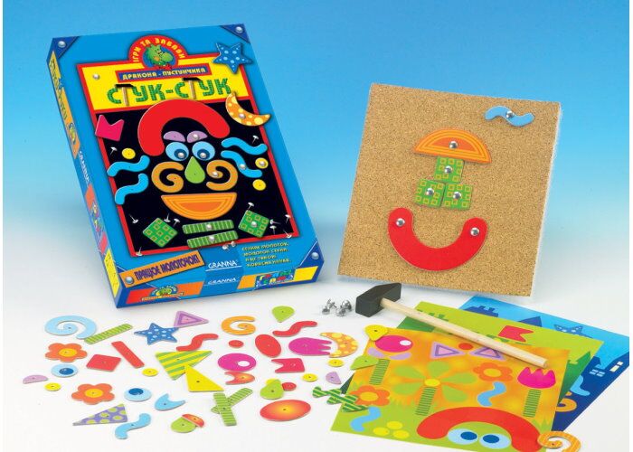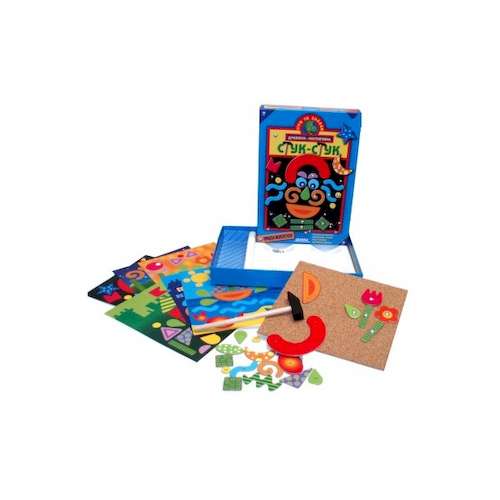 Игра Стук-стук развивающая - её рекомендуют педагоги для детей от 4х лет. Благодаря такому развлечению, появляется чувство формы, улучшается мелкая моторика, удается лучше различать цвета, развивается творческое мышление и креатив. Вы освоите геометрические формы, или придумаете какие-то свои фигуры, ведь абстракционизм еще никто не отменял. Радует, что это не одноразовая игра. Образовавшуюся картинку можно в любой момент извлечь из пробковой доски и составить какую-нибудь новую. Детали мозаики легко вынимаются из основы. К тому же, уже готовое изображение можно использовать, как деталь интерьера. Вы сможете повесить её себе в комнату, на кухню, или куда ещё душа пожелает!