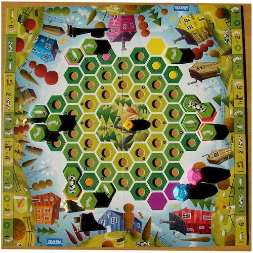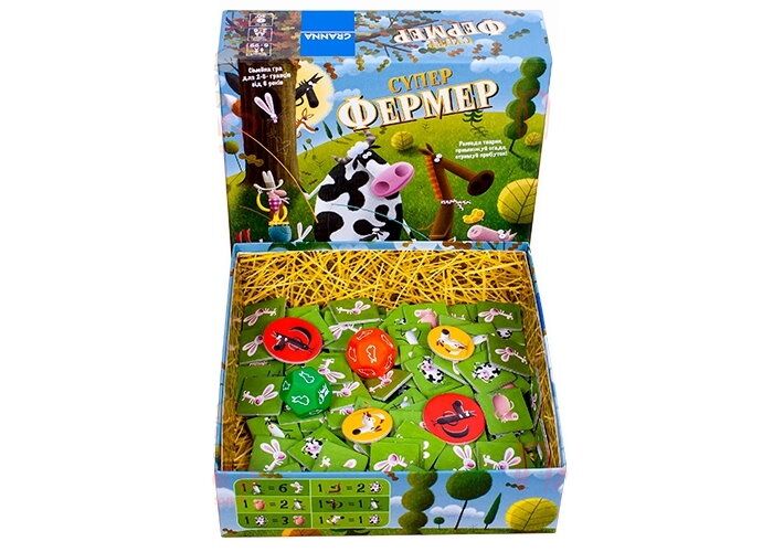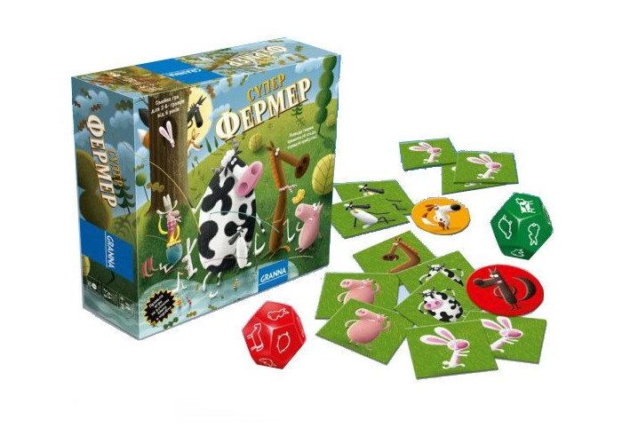 На место фермера пока еще не открыта, однако пройти стажировку могут все желающие. И проведём мы её в виде игры. Всё, что вам нужно – большое желание и немножко терпения. Результат каждого хода в настольной игре Суперфермер в стиле Ранчо будет зависеть не столько от вашей ловкости, сколько от удачи. Ведь в начале хода вы бросаете кубик, который и указывает, какое из животных дает приплод. Ваша задача – собрать как минимум по одному представителю каждого вида: корову, коня, овцу, кролика и свинью. В процессе игры может получиться, что коровка в вашем хлеву так и не появится, а кроликов – хоть отбавляй (все же мы знаем их способности к продолжению рода). В такой ситуации правила игры Суперфермер в стиле Ранчо предусмотрели взаимовыгодный бартер. Почему взаимовыгодный? Потому что меняться можно будет не только с главным стадом, но и со своими соперниками, торгуясь или придумывая свой личный курс. В то время как при обмене с главным стадом курс стабильный: за 6 кроликов можно получить 1 овечку, 2 овечки могут привести вам 1 свинью, 3 свиньи можно поменять на 1 корову, а имея 2 коровы – можно приобрести лошадь.