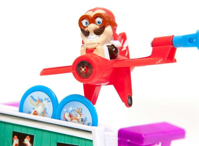 Теперь, когда все приготовления проведены, можно спускать рычажок. Он запускает движения самолетика, и дальнейшее развитие игры Летчик Луи оказывается в ваших руках и руках ваших противников. Ходить можно в любой момент, когда захочется и даже два, три или десять раз подряд. Суть вашего действия будет состоять в нажатии на педаль и создании некоего воздушного трамплина, который будет отталкивать Луи от насеста с вашими курицами, и направлять его «в гости» к соперникам. Данная игра развивает быструю реакцию, ловкость рук и мелкую моторику. Вам понадобится сделать всё, чтоб куры ваших конкурентов слетели с насеста и не позволить, при этом, чтоб кто-то столкнул ваших. Маленькая хитрость правил заключается в том, что игроки, лишившиеся своих «птичек» не могут претендовать на победу, однако имеют право продолжать мешать остальным получить заветное первое место. Поэтому играть придется до последнего, пока не останется только один игрок с курочками.