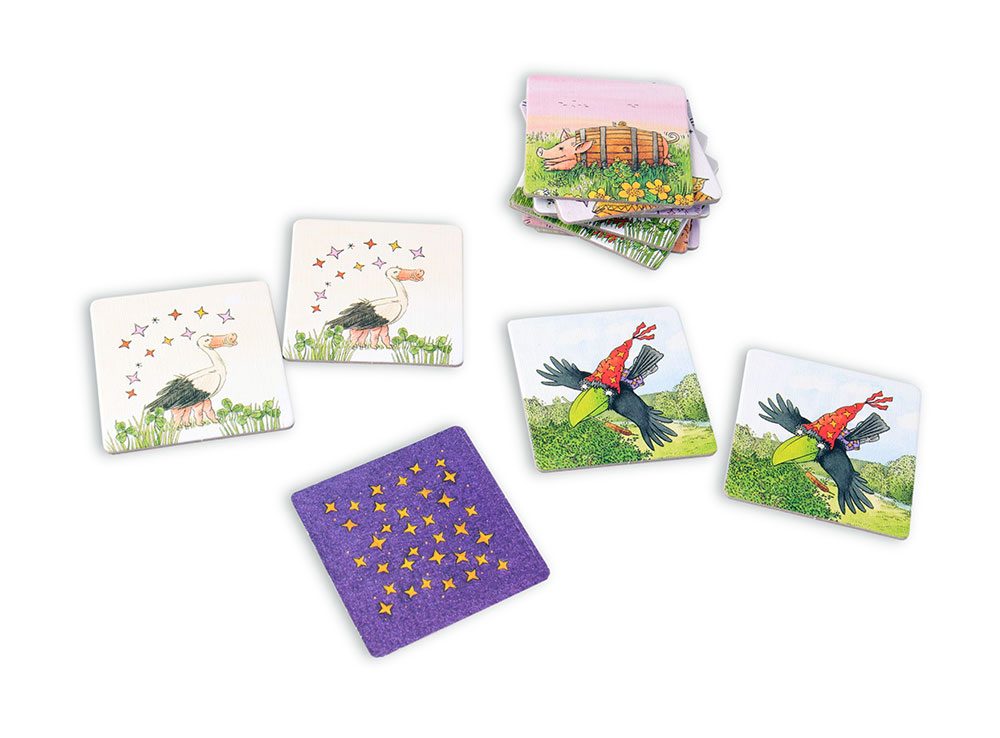 Такой вариант игры в «Лови ворон!» подойдет для самых маленьких. Можно также упростить правила, убрав из набора часть картинок, и не играть на очки – в этом случае «ловить ворон» могут и малыши младше трех лет, а также дети, которые не любят проигрывать. Если же за столом собрались участники постарше, то можно вести игру по более сложным правилам: открывать пару картинок за ход и закрывать их снова, если при этом на столе не появилось парных карт. Игрок, открывший две парных картинки, забирает их себе. При использовании такой версии правил «Лови ворон!» из быстрой игры на внимательность превращается в неспешное и сосредоточенное занятие, отлично развивающее память.