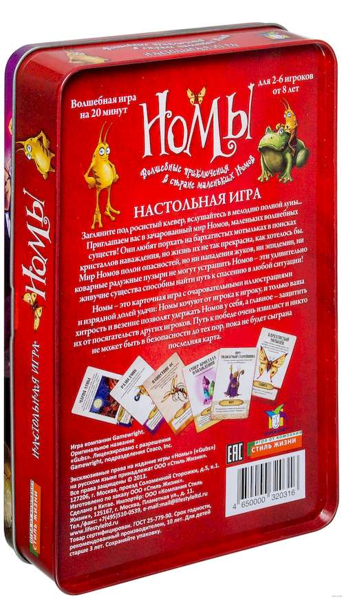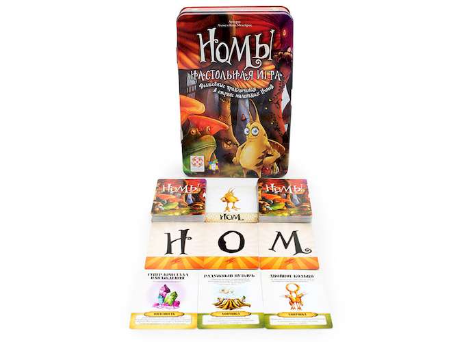 Чем-то «Номы» напоминают игры серии «Бэнг», правда правила полегче. Кстати, о них! В «Номах» не придется долго думать, что какое именно действие предполагалось создателями под этой вот витиеватой надписью – инструкции крайне четкие и понятные. Не тратьте время на изучения тонн правил, просто играйте! Купить игру «Номы» можно и для игры в дороге – удобная и компактная металлическая коробка позволит брать их куда Вам будет угодно. Так что, выйдем на номий курс в светлое будущее?