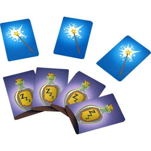 Теперь придется защитить ее от грозящих опасностей! Коварный рыцарь другого игрока может попытаться похитить одну из проснувшихся королев, если только похитителю не помешает грозный дракон. Да, да, в этой игре драконы защищают королев от рыцарей, а вовсе не наоборот! Владелец карты сонного зелья может снова погрузить одну из королев в сон, но чары можно разогнать взмахом волшебной палочки. Если же вы решили ввести в игру озорного шута, будьте готовы к неожиданностям: он может либо принести вам новую полезную карту, либо «подарить» одному из ваших соперников разбуженную королеву вне очереди. Карточки с цифрами можно сбросить, если на руках соберется определенная комбинация чисел, и взять вместо них новые карты из колоды: так в процессе игры маленькие игроки осваивают правила сложения.