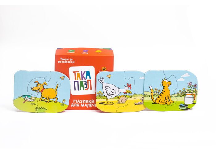 Настольная игра ТАКА МАКА Така Пазл Пазлики для малечі: Песик, Котик, Курочка (укр.) (60247-UA) - Така Мака 63787