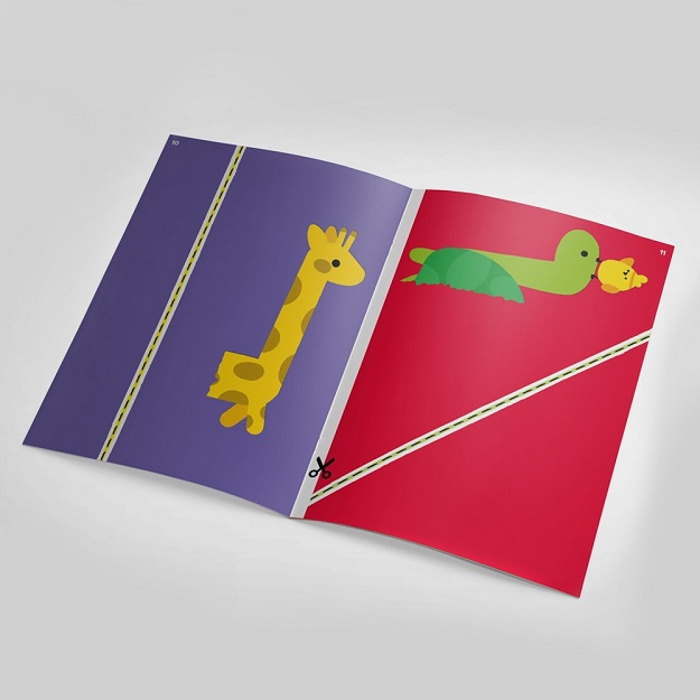 Каждый рисунок разбит на части, которые нарисованы на разных сторонах листа тетради. И, чтобы соединить их, нужно проявить смекалку и перегнуть бумагу в наиболее удачливом месте.