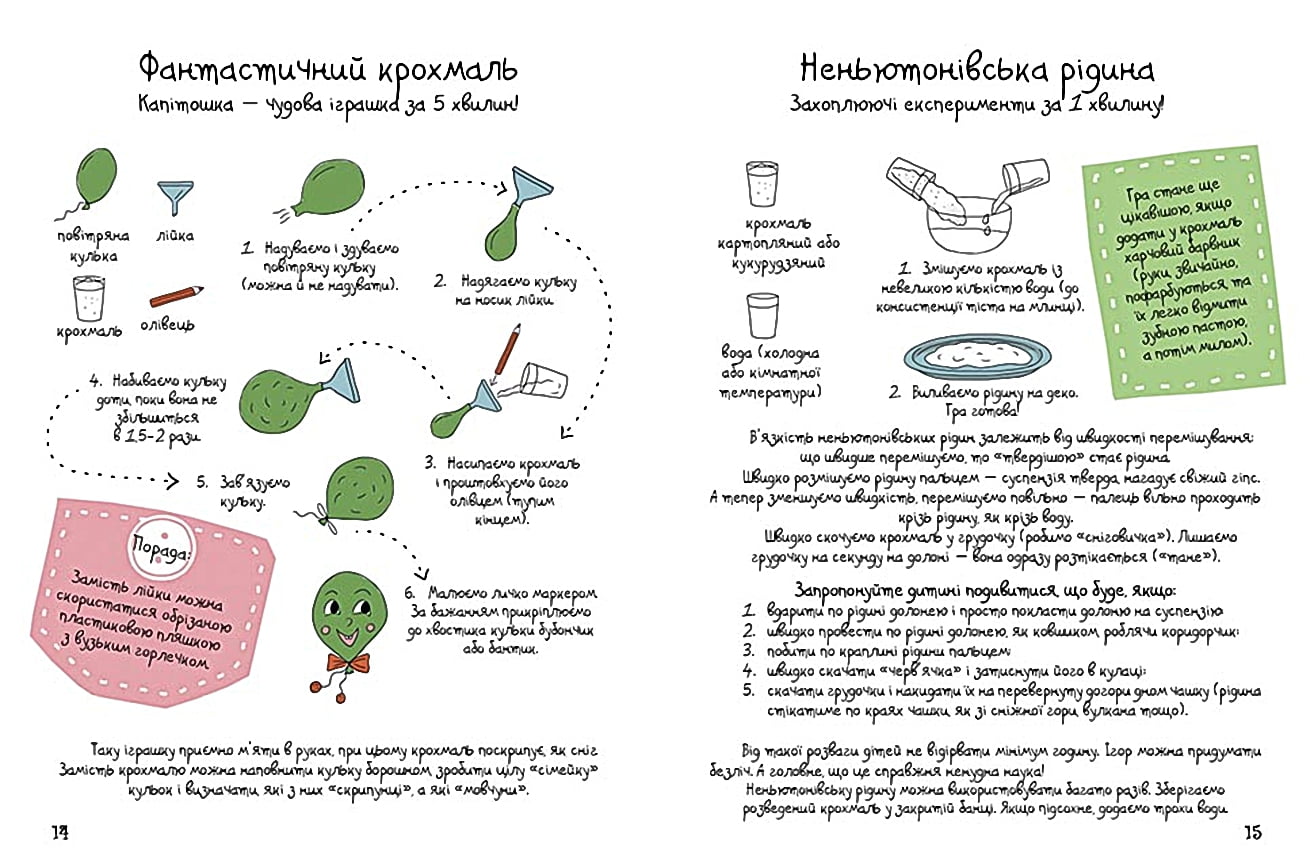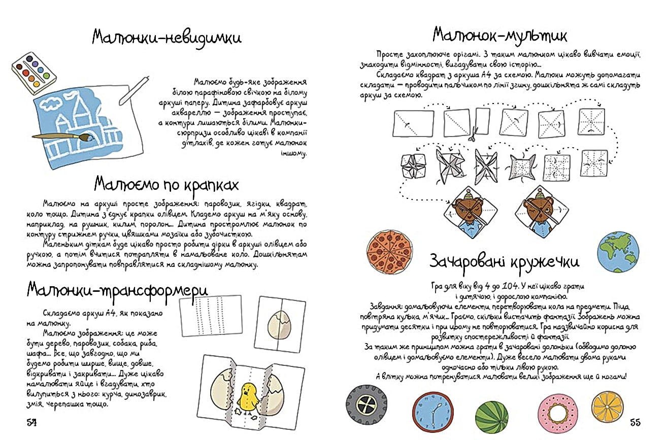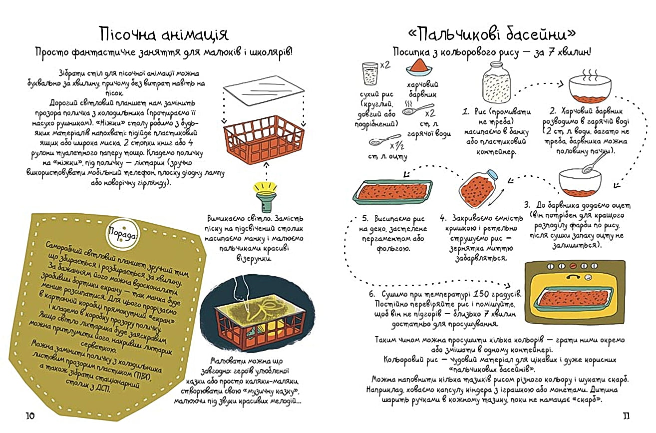 Ця книга — незамінна порадниця для мам діток від 2 до 8 років. Тут ви знайдете ідеї захопливих ігор на кухні та в дитячій кімнаті, поради, як перетворити звичайнісінькі продукти в пречудові матеріали для творчості, а також чимало цікавих експериментів. Сподіваємось, що книга надихне вас і вашого малюка грати, творити, досліджувати, винаходити щось нове і подарує багато радісних хвилин спільної творчості!
