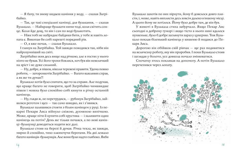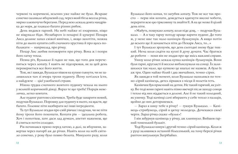 У казковій країні, створеній Руне Белсвіком, живуть наївні й відкриті створіння — добродушний Булькало, надійний Пекар Лис, невгамовна Октава, буркотливий Пундик, капосний Загрібайко. Їхнє повсякденне життя неквапливе й затишне — герої сваряться й миряться, радіють святам, печуть пироги, обожнюють пудинги, сушать змоклі черевики й кидають камінці у річку. Однак найпростіші речі сповнені особливого змісту, адже герої книжки вміють так радіти й радувати інших, що неможливо залишитися байдужим..