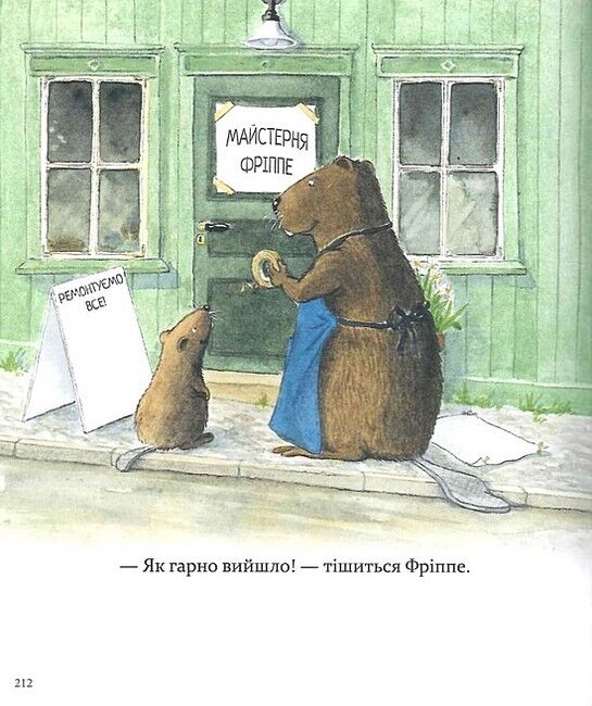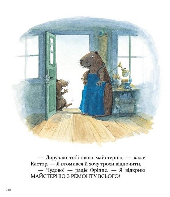 Відтепер усі-всі історії про Кастора й Фріппе в одній збірці! Книжка містить 6 уже улюблених історій (про те, як Кастор пече смачний пиріг, вирощує квасолю на підвіконні, майструє ящик для інструментів, шиє фартух, змішує фарби та фарбує шафку, лагодить велосипед) та 1 вперше перекладену українською — про те, як Фріппе узявся працювати в майстерні замість Кастора і що з того вийшло.