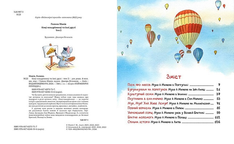 У другому томі разом із кицями маленькі читачі завиграшки дізнаються багато нового й цікавого про Португалію, Шрі-Ланку, Ірландію, Сан-Марино, Францію і Мадагаскар. А з початком повномасштабної війни киці вимушено помандрували до Великої Британії, Польщі та Литви.
