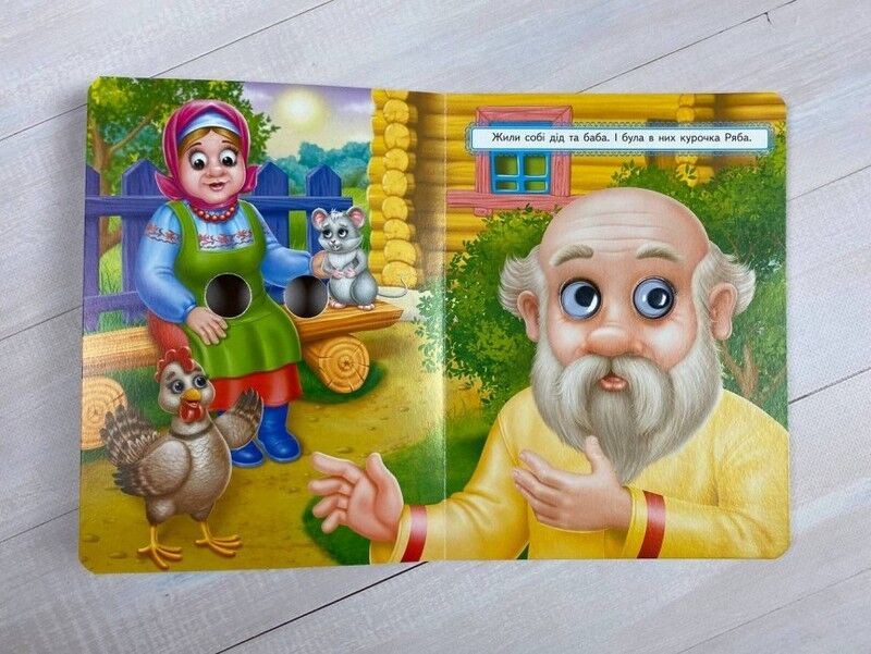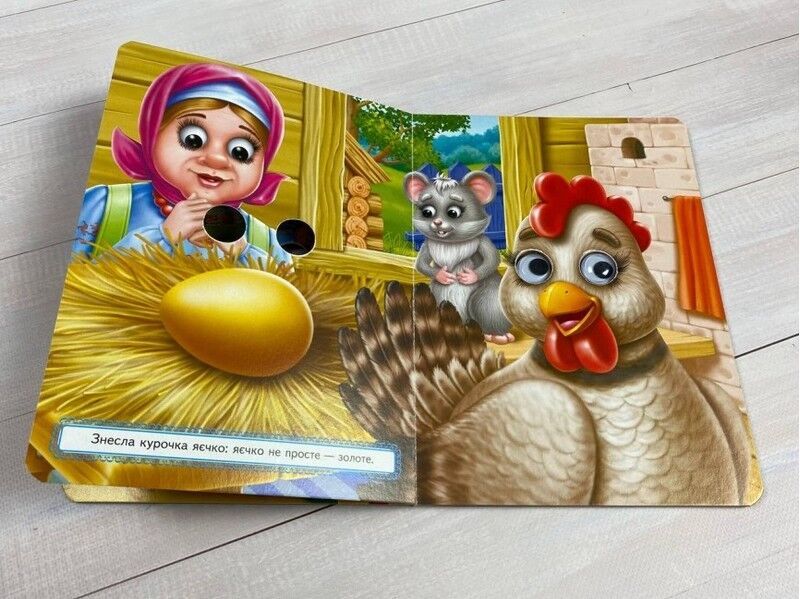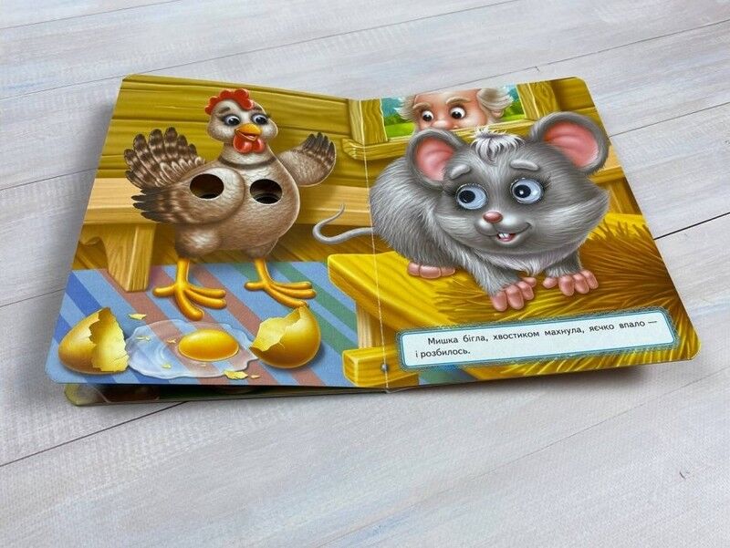 Улюблена народна казка Курочка Ряба у сучасному поліграфічному виконанні зачарує малюка яскравістю фарб та «живими» персонажами