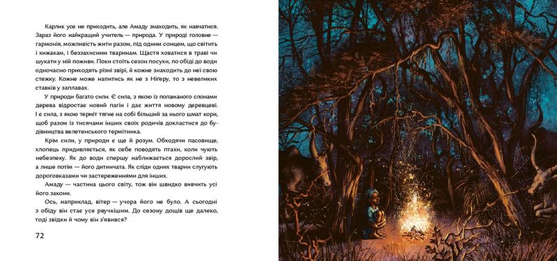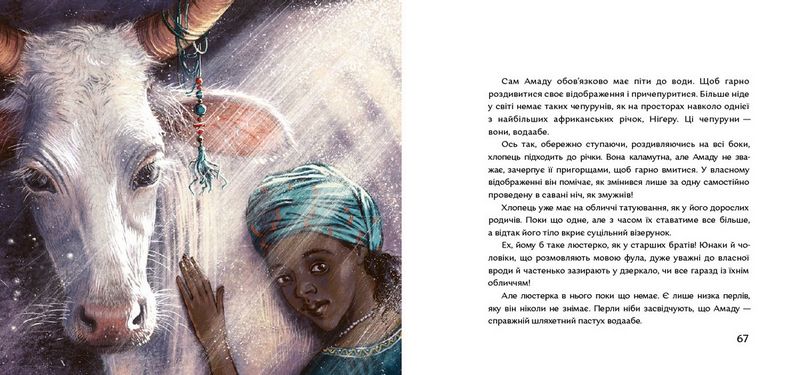 Як відчути далеку Африку? Наприклад, послухати її історії. Про дівчинку Лерато, яка відвідує традиційне весілля, рятується від чорної мамби — і помалу відкриває для себе, що таке любов. Про семирічного пастушка Амаду з племені водаабе — уже достатньо дорослого, щоб пройти ініціацію: сім днів і сім ночей наодинці пасти корів у савані. Про зебреня-альбіноса і його дружбу з маленьким зулусом, який теж вирізняється поміж дітей свого племені.