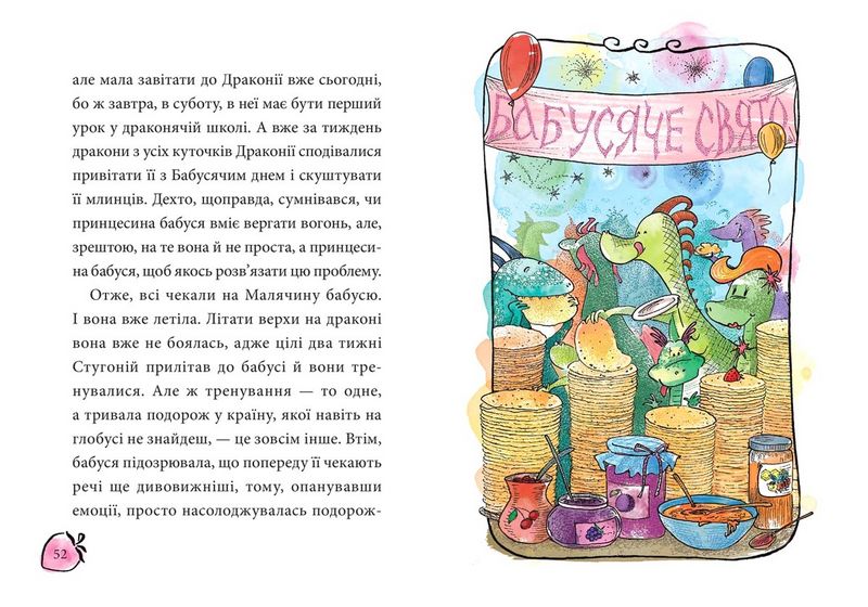 У цій книзі тривають неймовірні пригоди Маляки та її друзів — Драґо й Пиптика. Перед ними постало нелегке завдання: як подолати велетенського Навіженого дракона, який… ковтає бабусь? Насамперед треба виступити проти нього гуртом, вигадати щось хитромудре й застосувати всю сміливість. Тож гайда на допомогу — і перемога не забариться!