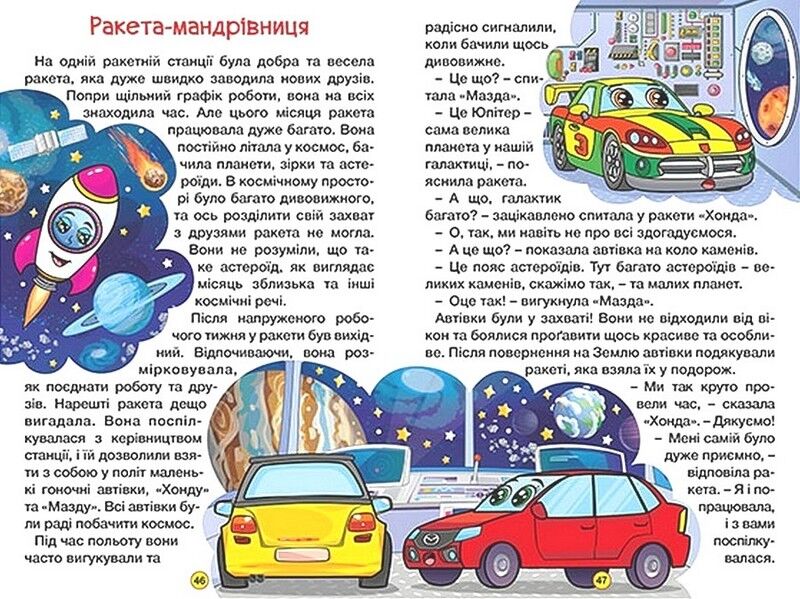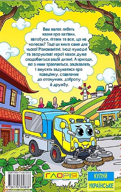 Ваш малюк любить казки про автівки, автобуси, літаки та все, що на колесах? Тоді ця книга саме для нього! Різноманітні, іноді кумедні та зворушливі герої казок дуже сподобаються вашій дитині. А пригоди, які з ними трапляються, зацікавлять і змусять задуматися про поведінку, ставлення до оточуючих, доброту й дружбу. Захопливі завдання в кінці казок допоможуть дитині легко, граючи зрозуміти та запам’ятати правила безпеки. Читайте із задоволенням!
