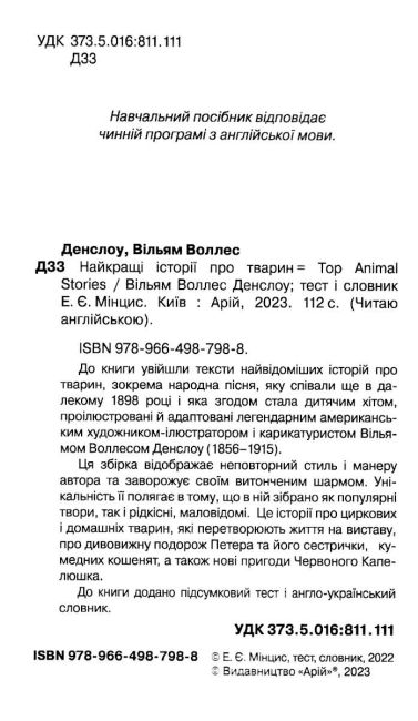 ЧИТАЮ АНГЛІЙСЬКОЮ НАЙКРАЩІ ІСТРІЇ ПРО ТВАРИН / TOP ANIMAL STORIES ВІЛЬЯМ ВОЛЛЕС ДЕНСЛОУ (ELEMENTARY A1/A2) ВИД-ВО: АРІЙ