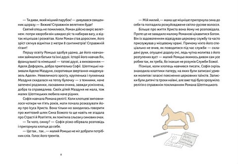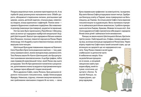 Це лише незначна частинка цікавих фактів, які ви знайдете у біографічній повісті, яку написала Марія Сердюк та проілюструвала Марічка Смеречинська. Ви дізнаєтеся, як жив і працював граф, меценат, інтелектуал, підприємець, митрополит і провідник Української Греко-Католицької Церкви, та прочитаєте поради для життя і правила ведення успішного бізнесу від Андрея Шептицького.