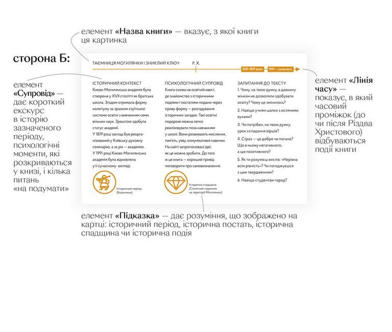 Унікальність видання – це складові, що допомагають дорослим знайти правильні слова для обговорення психологічних моментів з дітьми та глибшого розуміння історичного контексту: