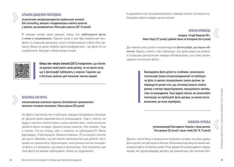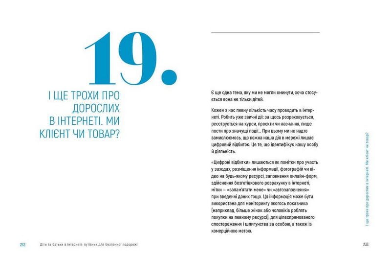 Як зробити час дитини в інтернеті безпечним? Коли реєструватися в соцмережах? Що таке кібербулінг? Як захиститися від злочинців у мережі?.. Поговоримо на сторінках цієї книги про різні ризики й можливості для дітей у сучасному онлайн-середовищі. Разом з нами досліджуватимуть це питання відомі психологи, поділяться досвідом успішні батьки. Сподіваємось, книга буде цікавою для всієї родини і допоможе знайти відповіді на багато важливих питань.