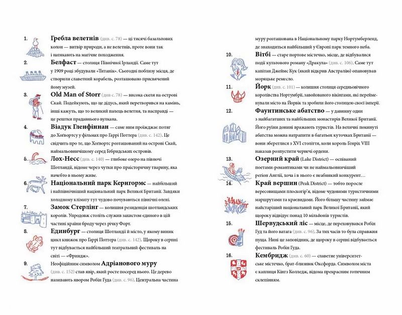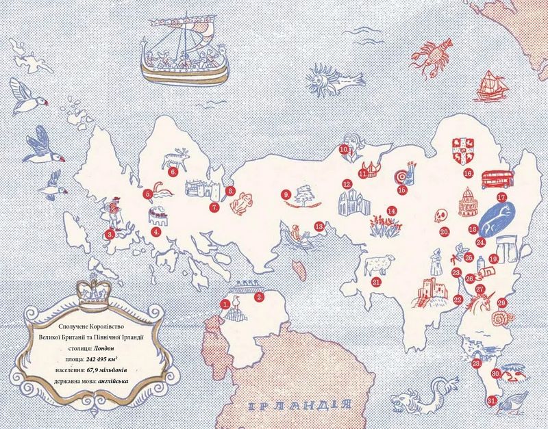 Усім відомо, що у Великій Британії лівобічний рух, а довжину вимірюють у футах. І що в них є королева. Та чи бачили ви стометрових білих коней на зелених пагорбах і круків, яких годують тістечками із кров’ю? Брали участь у перегонах за сиром і гонитві зі сковорідками? Чули про дверцята до світу ельфів, покинуті монастирі й кам’яні кола, у яких час плине повільніше?