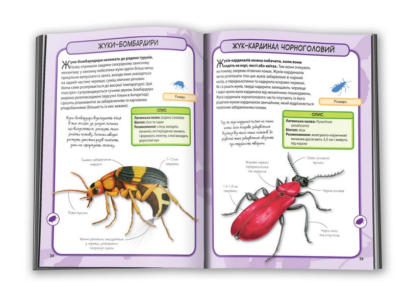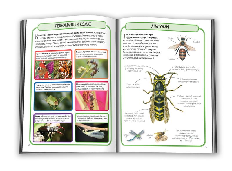 Пізнавальна книга "Комахи. Міні-енциклопедія" представлена українською мовою, в цікавому дизайні і з барвистими ілюстраціями.