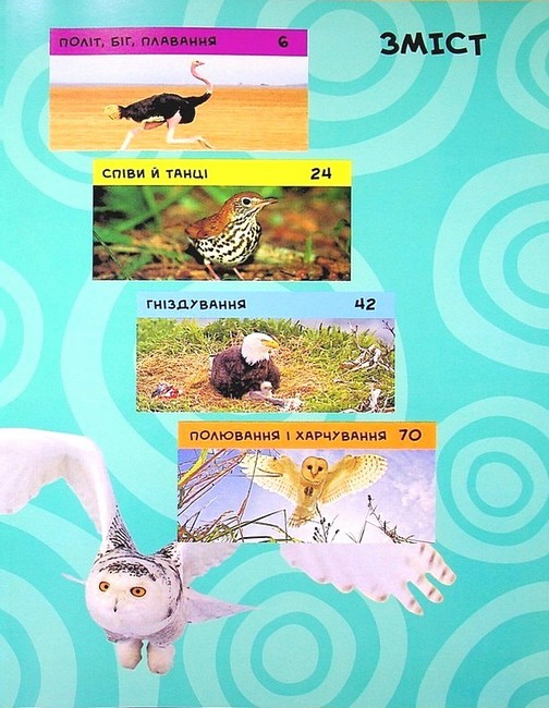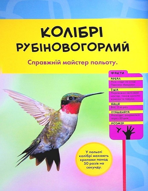 Відкрий світ пернатих! Колібрі, сови, пінгвіни, страуси, зозулі, червоні кардинали, королівські кондори, тукани, жовни, магалі-снувальники... На сторінках книжки ти познайомишся з різними птахами, дослідиш їхні особливості і дізнаєшся про життя у природі.