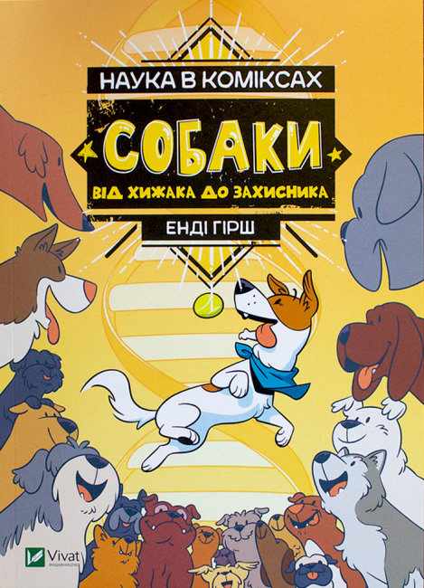 Наука в коміксах Собаки: від хижака до захисника Джули Гехт Миа Кобб Віват. Цей комікс розповість цікавинки про вірних друзів людини. Разом із песиком Руді ви дізнаєтеся, як з’явилися собаки, які незвичайні бувають породи, як цуцики сприймають світ та чому вони такі грайливі порівняно зі своїм найближчим родичем вовком. Важливі й пізнавальні факти тут подано в легкій, розважальній формі, тож точно запам’ятаються надовго.