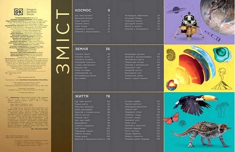 Ця енциклопедія створена поділитися з читачами УСІМ, що ми будь-коли знали про світ. Тому вона містить теми з різних галузей: занурюється в подробиці будови Всесвіту й Землі; розкриває особливості ВСЬОГО живого на планеті; пояснює ВСЕ про тіло людини; прискіпливо описує нашу історію й культуру. І про це не просто розказують — це показують на унікальних фото (яких понад 1500!) і підкріплюють інтерв’ю з експертами. Незамінне джерело знань для УСІХ, хто бажає розширити свій кругозір.