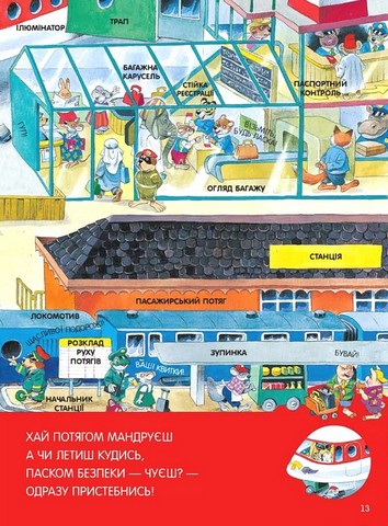 Це чудова книжка для маленьких допитливих шукачів пригод — з нею вони можуть побувати у різних куточках нашої планети, дізнатися про все, що оточує їх в певних ситуаціях — від видів міського транспорту до назв тварин у селі та морських істот. І як цікаво вирушати у фантастичні подорожі разом із батьками!