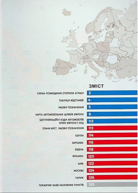 Атлас автомобільних шляхів Європи відображає сучасну дорожню інфраструктуру європейського континенту.