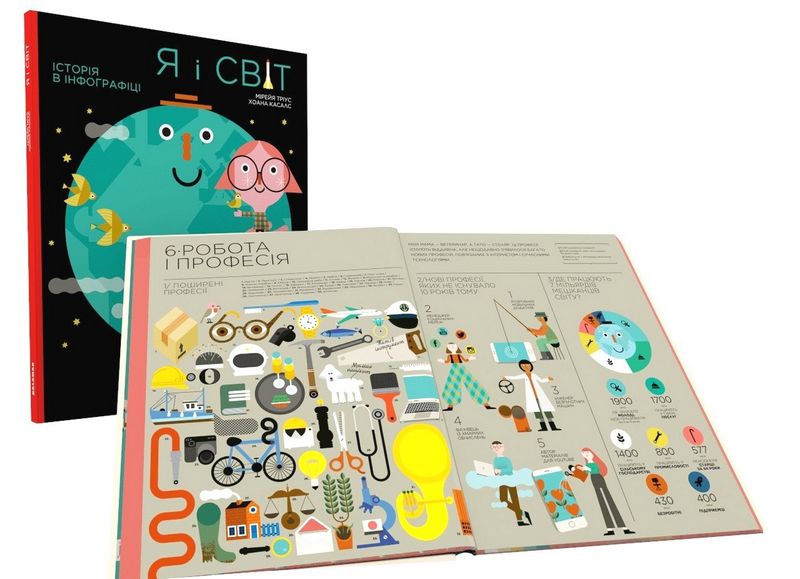«Я і світ» — це книга для сучасних дітей, які мислять образами. В ній Ви не зустрінете переліків і довгих текстів, тільки символи і умовні позначення, які прокачають візуальне мислення.