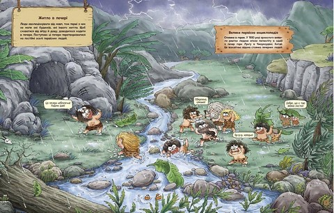 \nЧитайте разом з малечею, занурюйтесь у побут пралюдей і вивчайте історію. Як бонус у книжці є рубрика з порадами для виживання в польових умовах, що точно не залишить байдужою маленьких шукачів пригод.