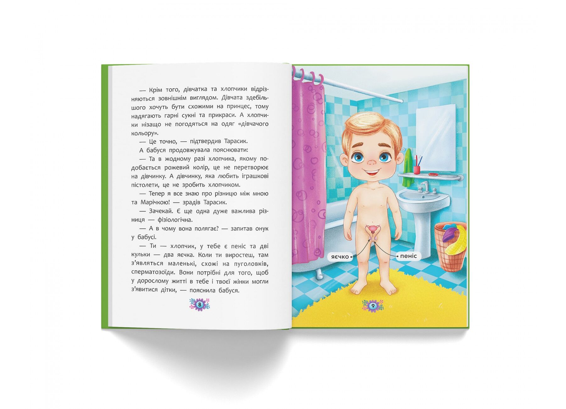 Статеве виховання дитини — запорука і?і? здоров’я та гармоніи?ного розвитку. Проте дорослим буває ніяково обговорювати з дитиною делікатні теми. Це видання допоможе батькам розмовляти з малюками про інтимні речі відверто та обережно. Книжка просто та зрозуміло розкаже, як правильно називаються статеві органи, як вони влаштовані, для чого потрібні и? чому ми прикриваємо і?х білизною, розкриє таємницю про те, як діти з’являються на світ, а ще познаи?омить з правилами безпеки, які необхідно знати змалечку. Прочитаи?те книгу разом з дитиною і запропонуи?те і?и? відповісти на запитання, щоб переконатися, чи все малюк зрозумів правильно.