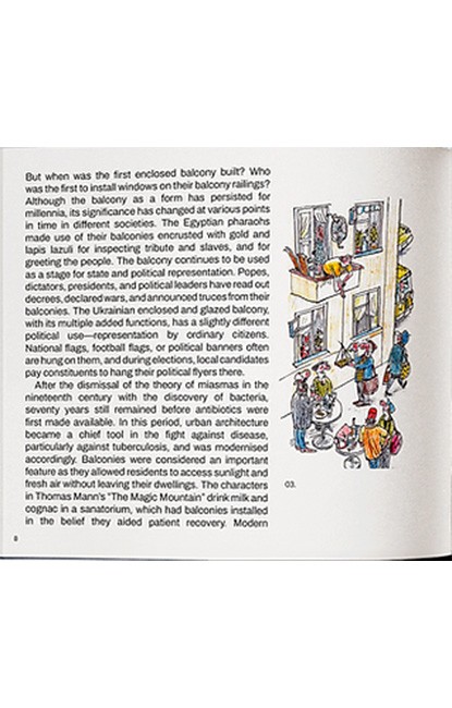 Take a glimpse at the lives of ordinary Ukrainians through a unique architectural phenomenon: DIY balconies. This photo book tells the origin story of these balconies—in short, a product of unregulated space—and documents them in all their eclectic glory: beautiful, bizarre, ugly, plexiglass and plastic, painted wood, traditional, modern, junk-filled, bare skeletons, and hanging gardens. Each balcony is unique, just like its owner. Most photos taken in the years 2017–2019. The second edition contains images taken between 2022 and 2024.