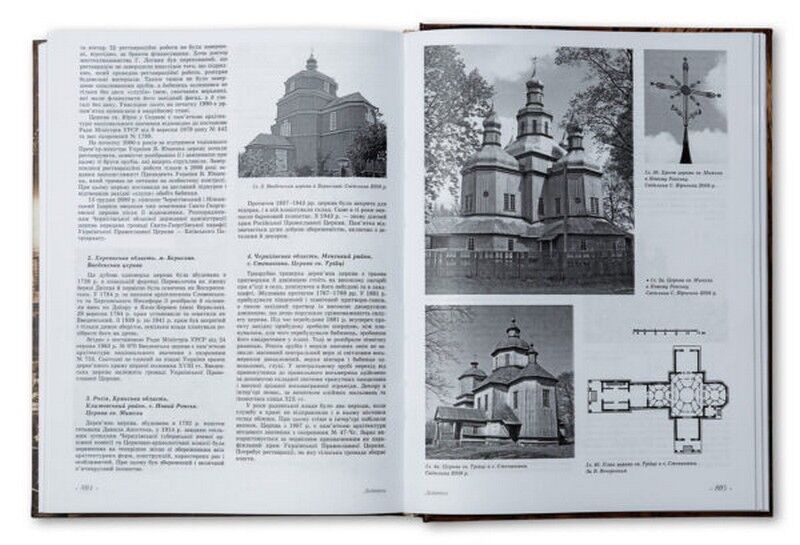 Книга посвящена украинской деревянной церковной архитектуре Левобережной Украины. В издании представлено больше 180 деревянных храмов, 90% из которых будут уничтожены коммунистической властью в 1920-30-х годах. Для большинства памятников подано чертежи, более 1000 фотографий интерьеров и экстерьеров. Для книги разработан именной и предметно-географический указатель, который упрощает работой с книгой. В 13 дополнениях подано иллюстрированный реестр сохранившихся храмов, таблицы размеров наиболее выдающихся памятников архитектуры, а также материалы, рассказывающие о драматической судьбе первого издания книги в 1976 в урезанном виде.