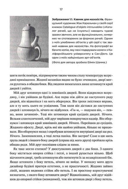 Це один з прикладів абсурдного дизайну, який не враховує потреб користувача і банально дратує. І таких речей безліч. Вишукані, але нефункціональні двері, химерні стільці, дивні чайники й холодильники — Дональд Норман наводить чимало прикладів дизайнерських помилок, які змушують споживачів почуватися розгубленими і не надто кмітливими. Цей посібник вчить помічати гарний дизайн і прийоми, до яких вдаються вдумливі дизайнери...