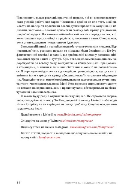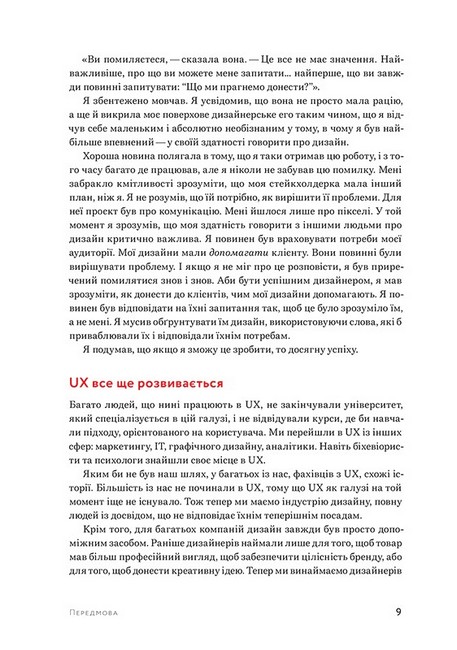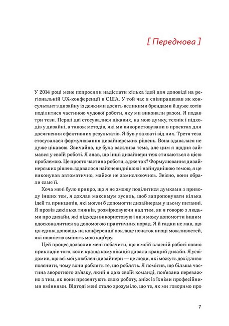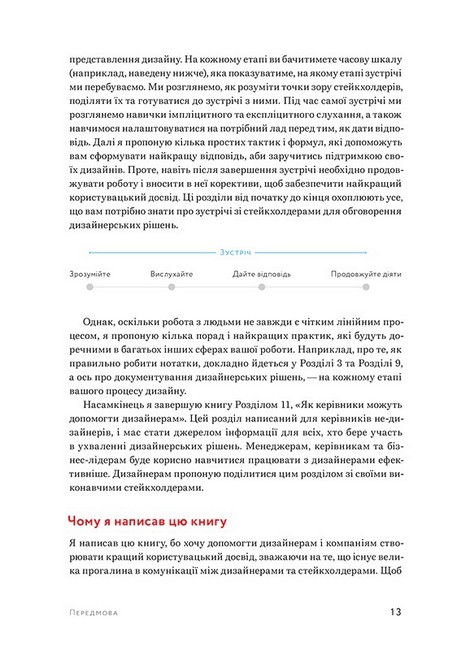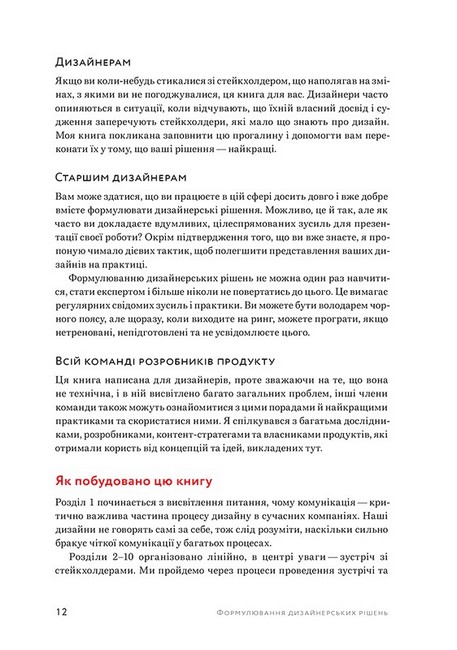 Уміння говорити з людьми про власний дизайн здається базовою навичкою, однак вправно робити це на практиці буває непросто. Нерідко те, як ви спілкуєтеся зі стейкхолдерами (зацікавленими сторонами), клієнтами та іншими людьми, які не належать до дизайнерів, може бути важливішим за сам дизайн. Адже якщо ви не зможете заручитися їхньою підтримкою, ваша робота ніколи не побачить світ — якою б гарною вона не була.Цей практичний посібник зосереджено на принципах, тактиках і ефективних методах представлення ваших дизайнів. Незалежно від того, що ви розробляєте — застосунки, веб-сайти чи продукти, — ви дізнаєтеся, як заручитися підтримкою людей, що мають вплив на проєкт, аби посприяти створенню найкращого користувацького досвіду.