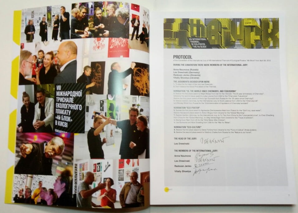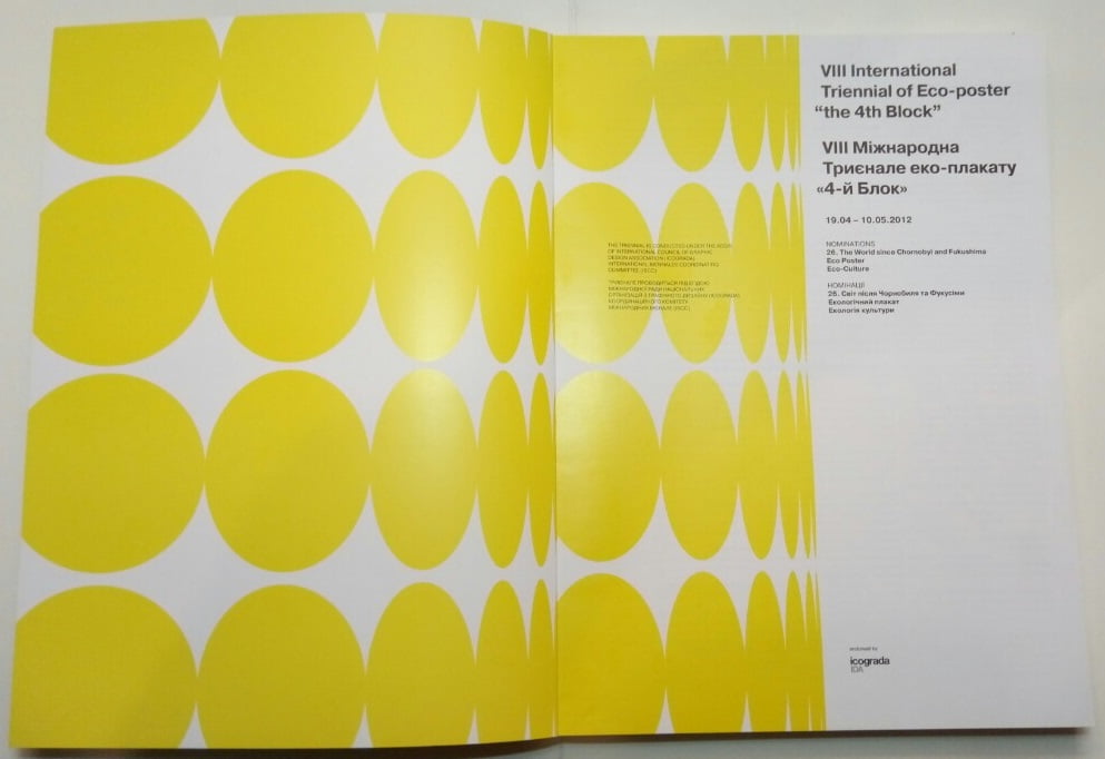 NTERNATIONAL TRIENNIAL “THE 4TH BLOCK” is a unique designer’s exhibition that takes place every three years in Kharkov -a second largest city in Ukraine. Its intent is to reveal the latest trends and innovations in contemporary poster designs, as well as other visual arts, which have environmental aim or connotation. It takes its’ name - “The 4th Block” from the nuclear reactor number 4, which was destroyed in the devastating explosion of the Chernobyl nuclear power station in 1986.