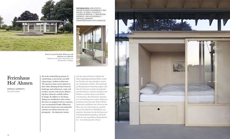 Both an architectural and a travel guide, this volume offers inspiration and promises to fulfill the longing for peace, solitude and variety – for holidays spent at a farmstead on the dyke, above the sea on a crane, or in a fancy loft in Copenhagen. The common denominators among all accommodations presented here are a convincing design and a special location by the Baltic Sea.