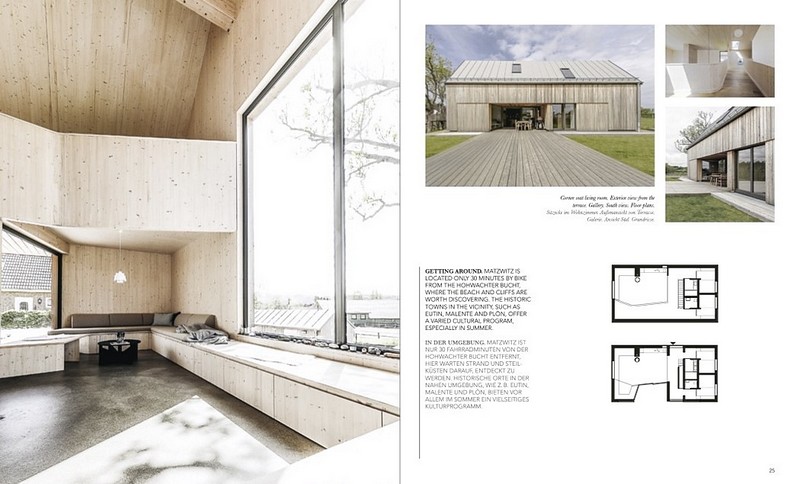 Як архітектурний, так і туристичний путівник, цей том пропонує натхнення та обіцяє здійснити прагнення до миру, самотності та різноманітності – для відпочинку, проведеного на садибі на дамбі, над морем на крані або на шикарному горищі в Копенгагені. Спільними знаменниками серед усіх представлених тут помешкань є переконливий дизайн та особливе розташування біля Балтійського моря.