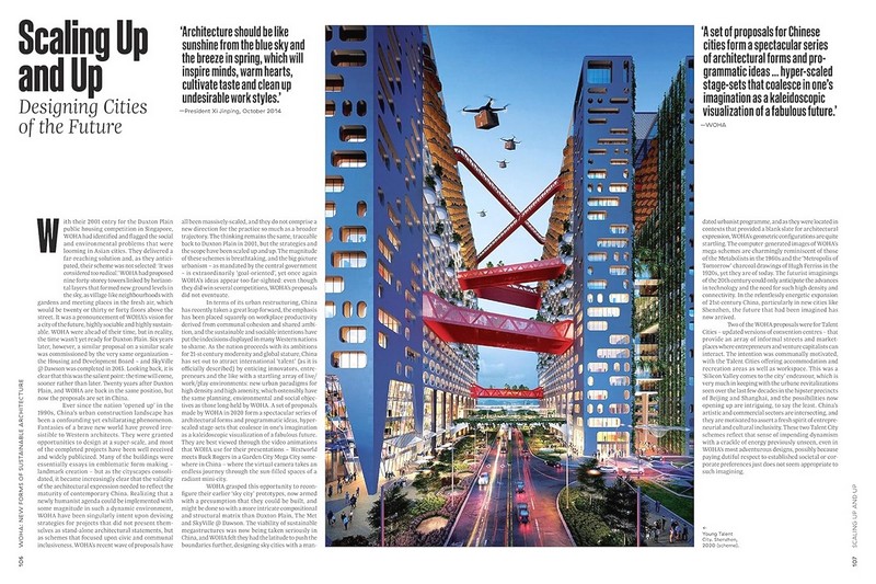 Навіть на передовій архітектурній сцені Сінгапуру WOHA заклала новий шлях, і вони продовжують це робити в наших містах, що швидко розвиваються, де далекоглядне мислення є обов’язковим для сталого та комунікабельного розвитку. Його проекти простягаються від Сінгапуру до Бангладеш, Китаю та Австралії, де амбіції цієї практики реалізуються в таких роботах, як самодостатній цифровий район Пунггол у Сінгапурі.