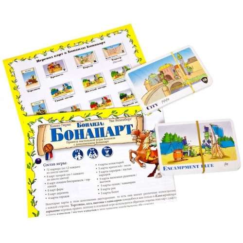 В сказочном государстве Бобландия неспокойно: принцы соседних земель вознамерились пойти друг на друга войной! Теперь обитателям страны придется не только мирно сажать бобы, снимать урожай и торговать или делиться бобовыми запасами, но и вкладывать полученные от продажи средства в военные операции. Впрочем, боевые действия тоже будут вестись при помощи бобов, а это значит, что жертв и серьезных разрушений не предвидится. «Бонанза. Бонапарт», дополнение к замечательной настольной игре «Бонанза» превращает несложную семейную забаву в настоящую военно-экономическую стратегию, со всеми присущими этому жанру особенностями. Внимание: дополнение не является отдельной игрой, его обязательно нужно скомбинировать с базовым комплектом «Бонанзы»!