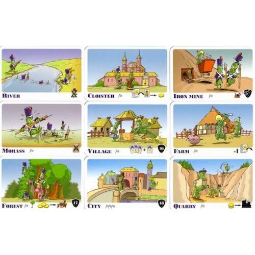 Каждая захваченная территория приносит пользу! Так, владелец карьера за небольшую плату может выстроить крепость, благодаря которой захватить его земли будет сложнее, а владелец деревни получает право на дополнительную карту в фазу выращивания бобов. Если вам повезет обзавестись фермой, то урожай бобов на полях существенно увеличится, ну а из железа, добытого на рудниках, можно выковать пушки, стреляющие бобами – с их помощью получится захватить больше земель, и даже выступить на штурм крепости! Кроме того, никогда не поздно вложить ср