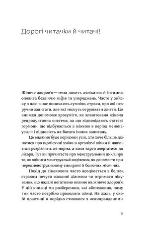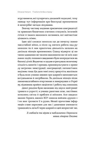 У своїй книжці гінекологиня Оксана Негрич докладно знайомить кожну з її ж власним організмом. Чи нормально відчувати біль при менструації і що з цим робити? Які аналізи варто здавати, аби моніторити ситуацію та чому такий важливий запас яйцеклітин? Як правильно стежити на інтимною гігієною та чи можна завагітніти, годуючи грудьми? Чи потрібно жінкам робити вправи Кегеля, боятися ерозії та як слідкувати за мікрофлорою піхви?